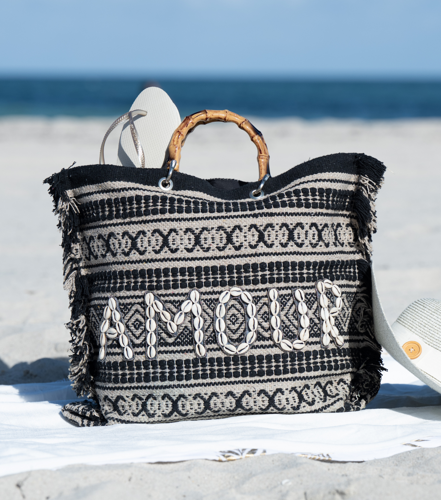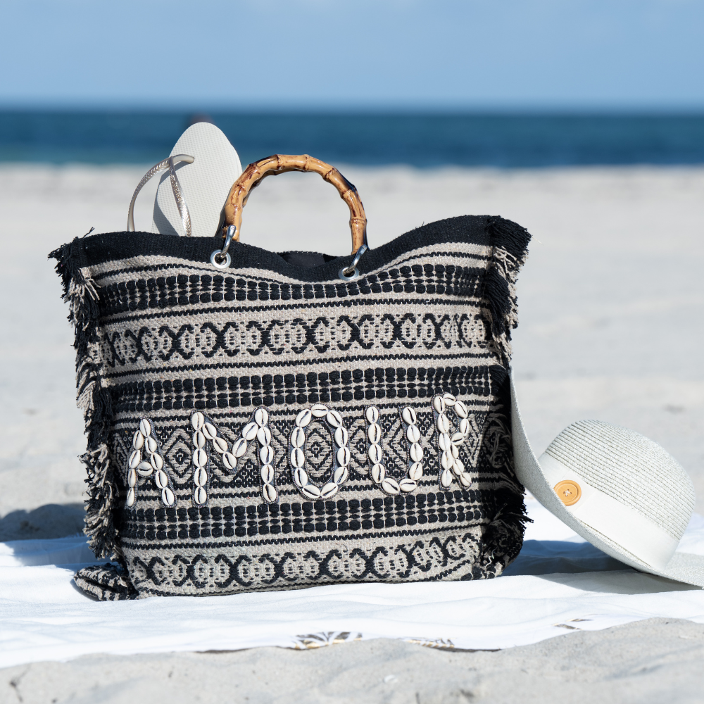 Our company is dedicated to providing you with stylish and functional bags that are perfect for your next day on the beach or just for carrying your essentials in a fashionable way. Each of our handmade bags are eloquently named after queens and princesses. Our bags are made from high-quality natural fabrics such as cotton, recycled cotton, jute, seashells, and glass beads.